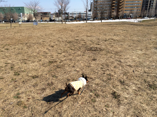 公園の雪が溶けてついに入れるようになったよーっ( *≧∀≦* )